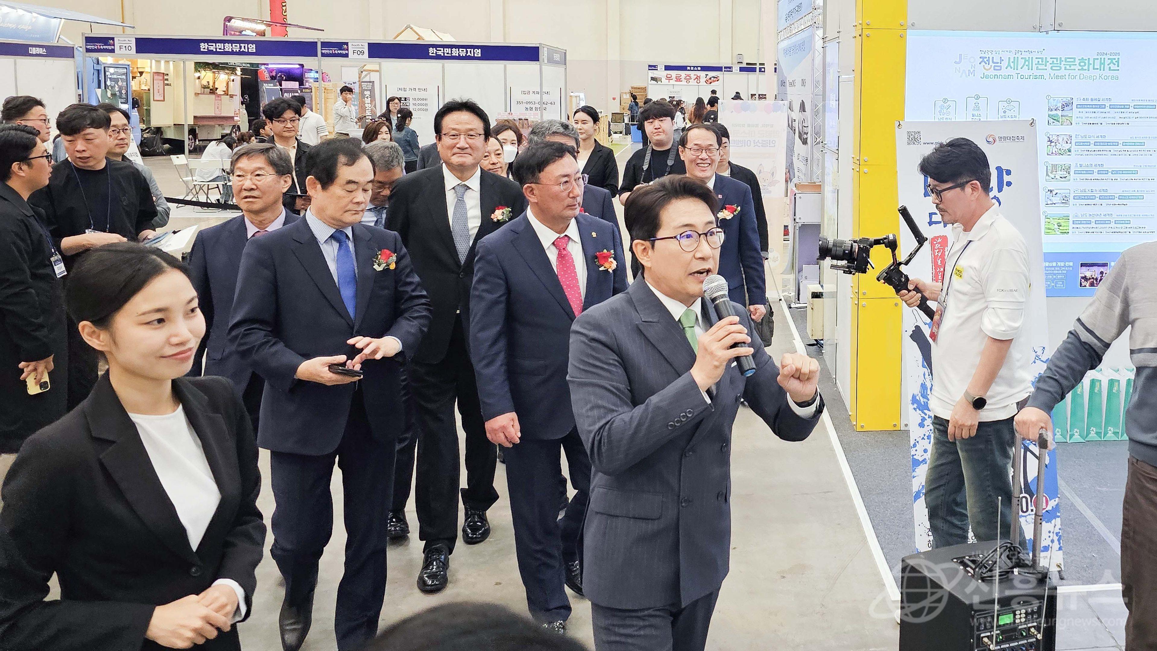 개막식 후 내빈들이 안내를 받으며 각 부스를 보고 있다. 김경동 기자(kimkd530@shinheungnews.com)